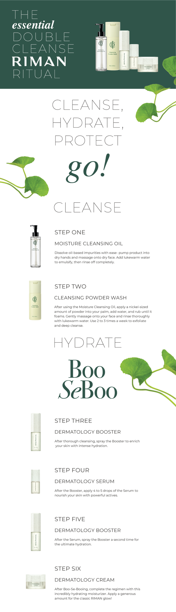 - Oil Cleanse – breaks down makeup, SPF, and oil-based impurities